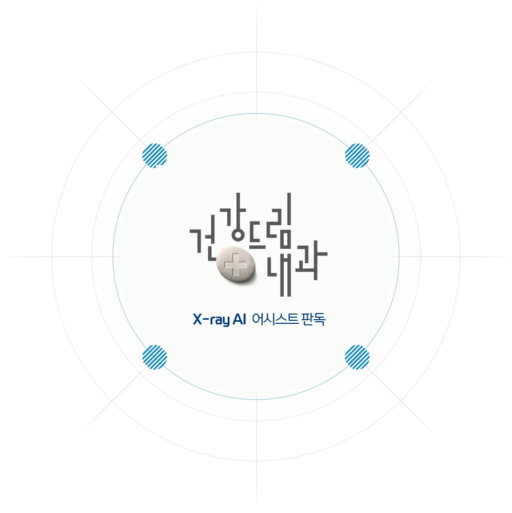 AI 알고리즘이 엑스레이 이미지를 분석하여 골절, 종양, 폐렴 등 이상 소견을 감지합니다.
